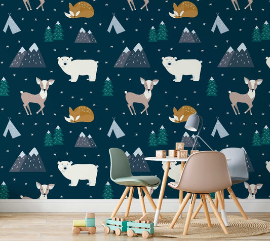 Hand Drawn Animal Forest Wallpaper Mural