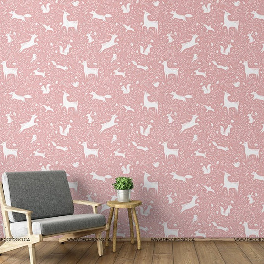 Pink Woodland Animals Wallpaper Mural