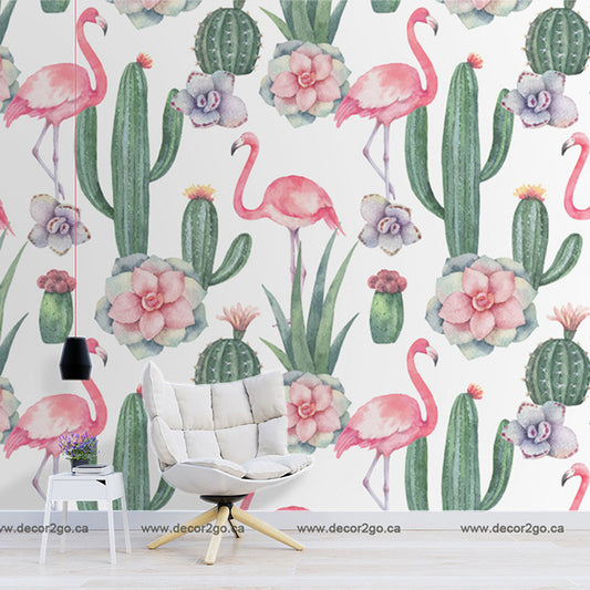 Cactus and Flamingos Wallpaper Mural