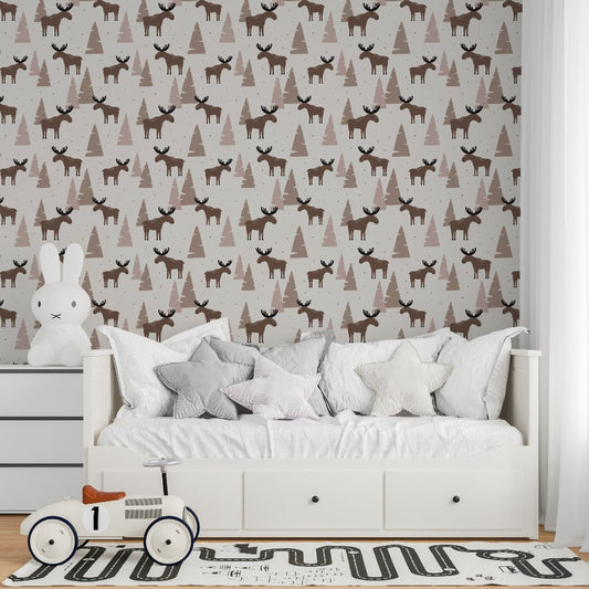 Moose and Pines Wallpaper Mural