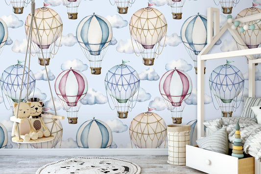 Watercolor Hot-Air Balloons Wallpaper Mural