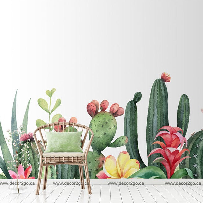 Experience the timeless allure of rustic cacti with Decor2Go’s Garden of Cacti Wallpaper Mural. This captivating mural celebrates the beauty of these beloved plants, capturing their rugged yet elegant essence in stunning detail. With a brilliant display of green and red hues, this mural adds a touch of natural charm to any living space, creating a visually striking focal point that inspires tranquility and fascination.
