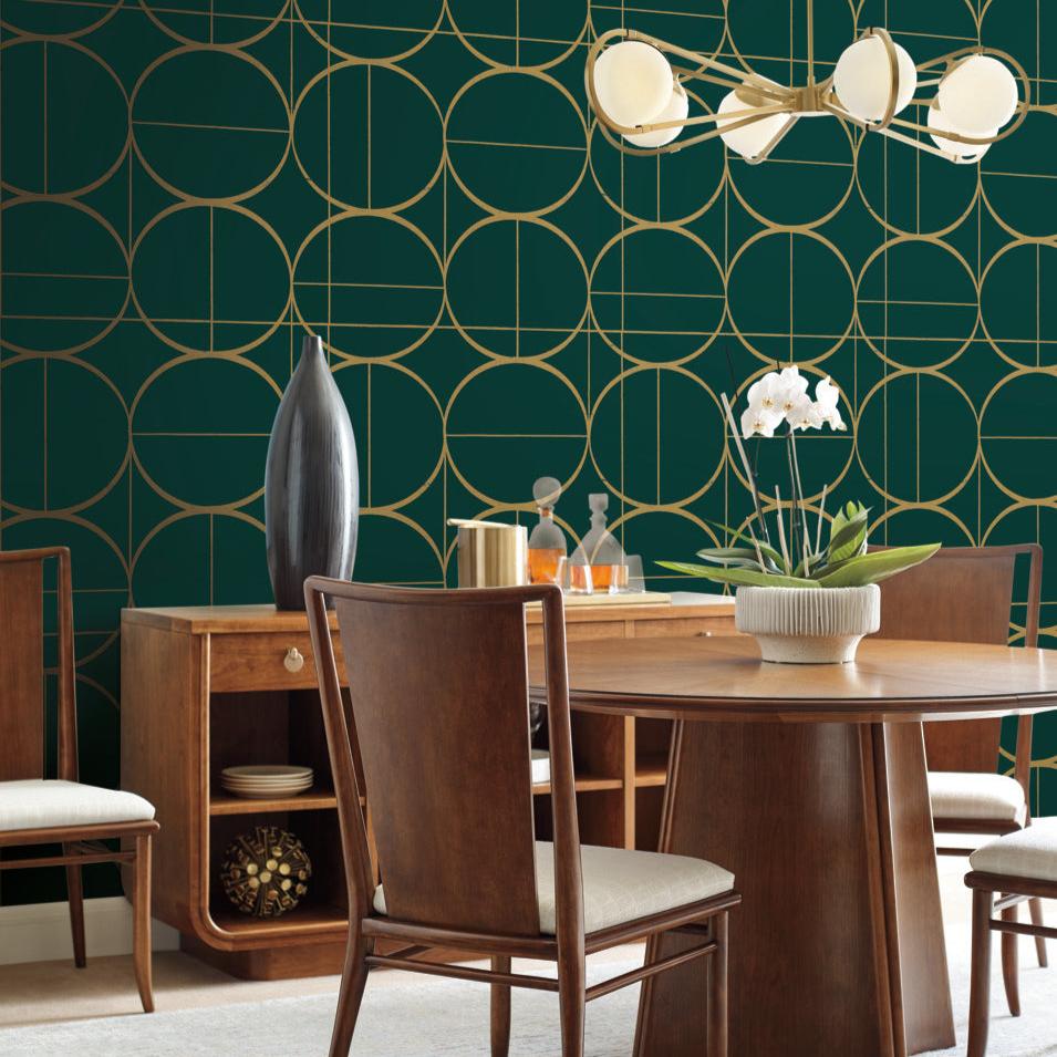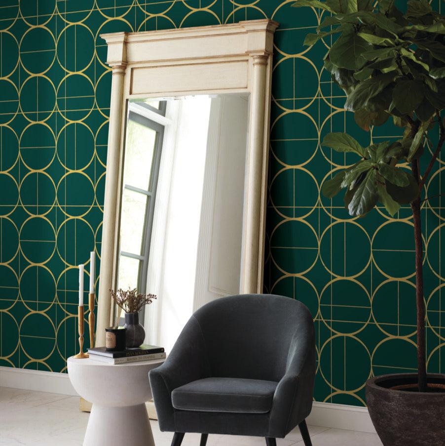 Emerald & Gold Sun Circles Wallpaper (60 SqFt)