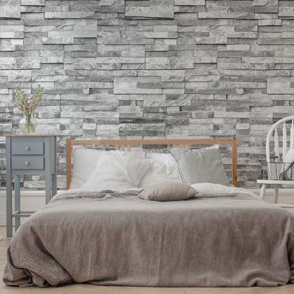 Embossed 3D Effect: Experience the illusion of real stone with our Grey Stone Wall Wallpaper Mural. The crisp 3D effect creates an embossed finish that adds depth and texture to your walls, making them come alive with the appearance of authentic brickwork.