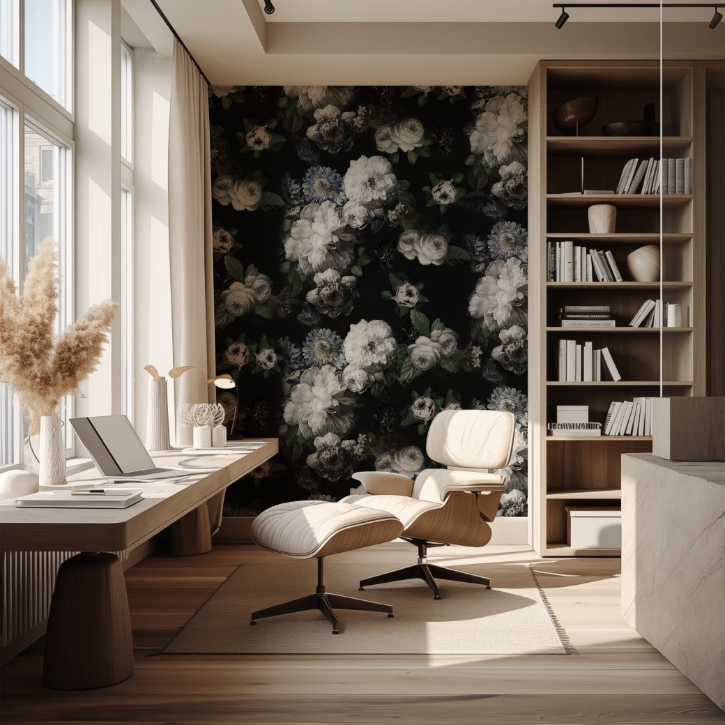 Elevate your interior design with the Midnight Bloom Floral Wallpaper Mural. Add a touch of refinement and transform your walls today!